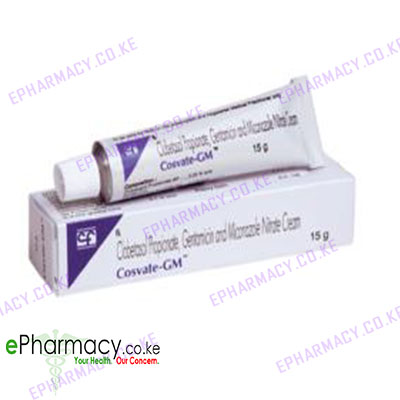 COSVATE contains Clobetasol propionate, a corticosteroid used topically for its glucocorticoid activity in the treatment of various skin disorders associated with itchness, rash, redness and allergy. It is usually used as a cream, ointment, gel, scalp application, or foam containing 0.05%. COSTAVE G contains Gentamycin, while COSTAVE GM contains Gentamycin and Miconazole. The latter two are used when there is an evidence of fungal skin infection associated with itchness.
