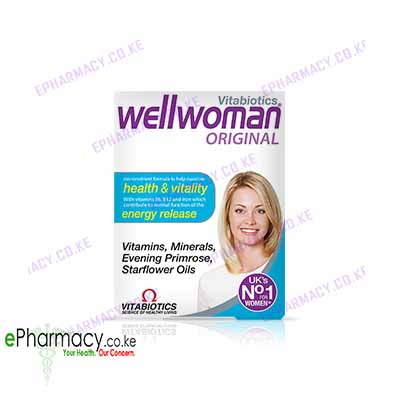 Wellwoman original in Kenya is a comprehensive daily multivitamin which gives support to the areas of health which are of most relevance to women including vitamin B6 which contributes to the regulation of hormonal activity, plus iron which contributes to normal formation of red blood cells. More Info